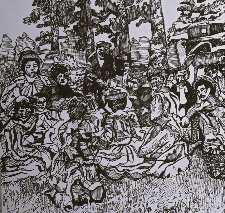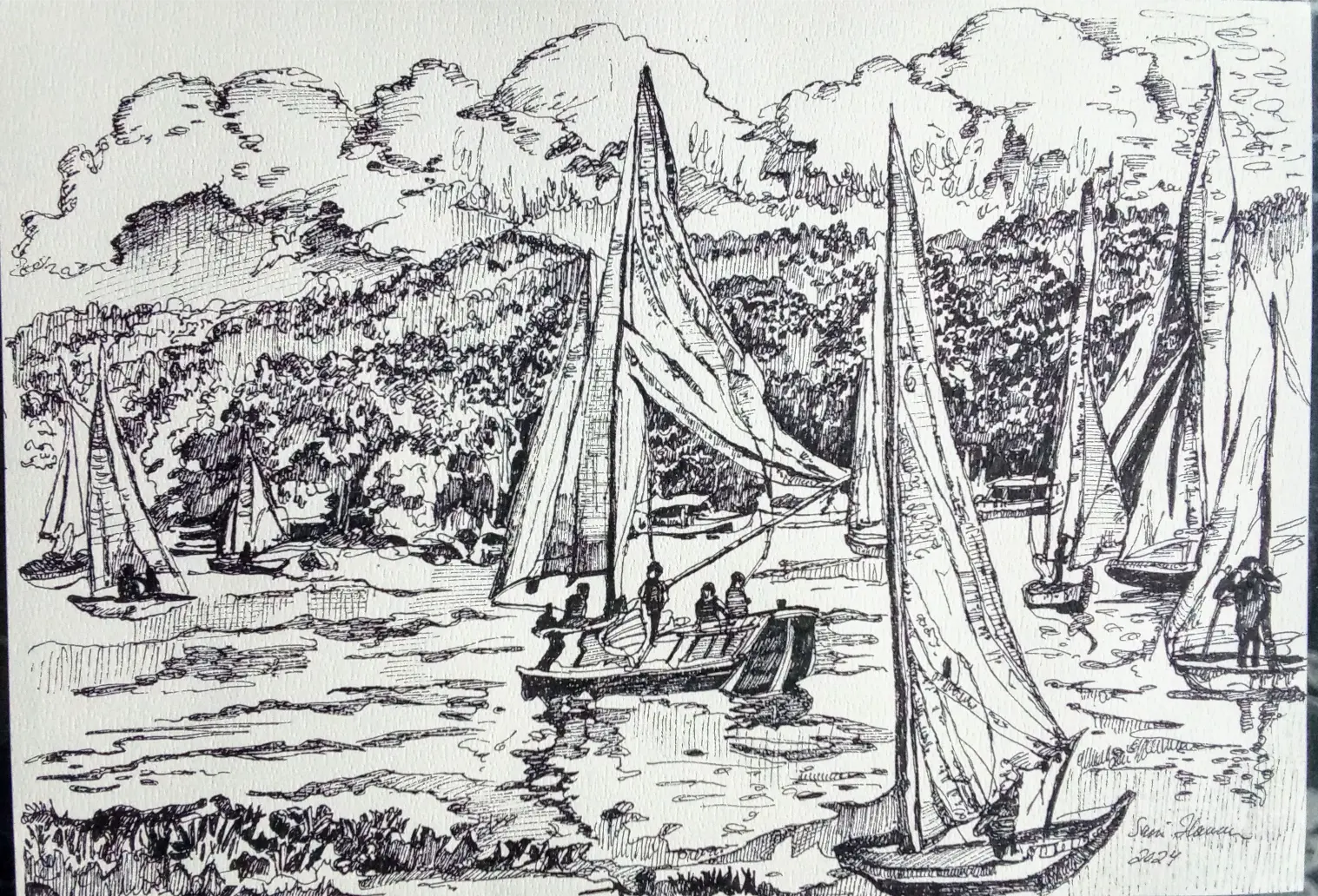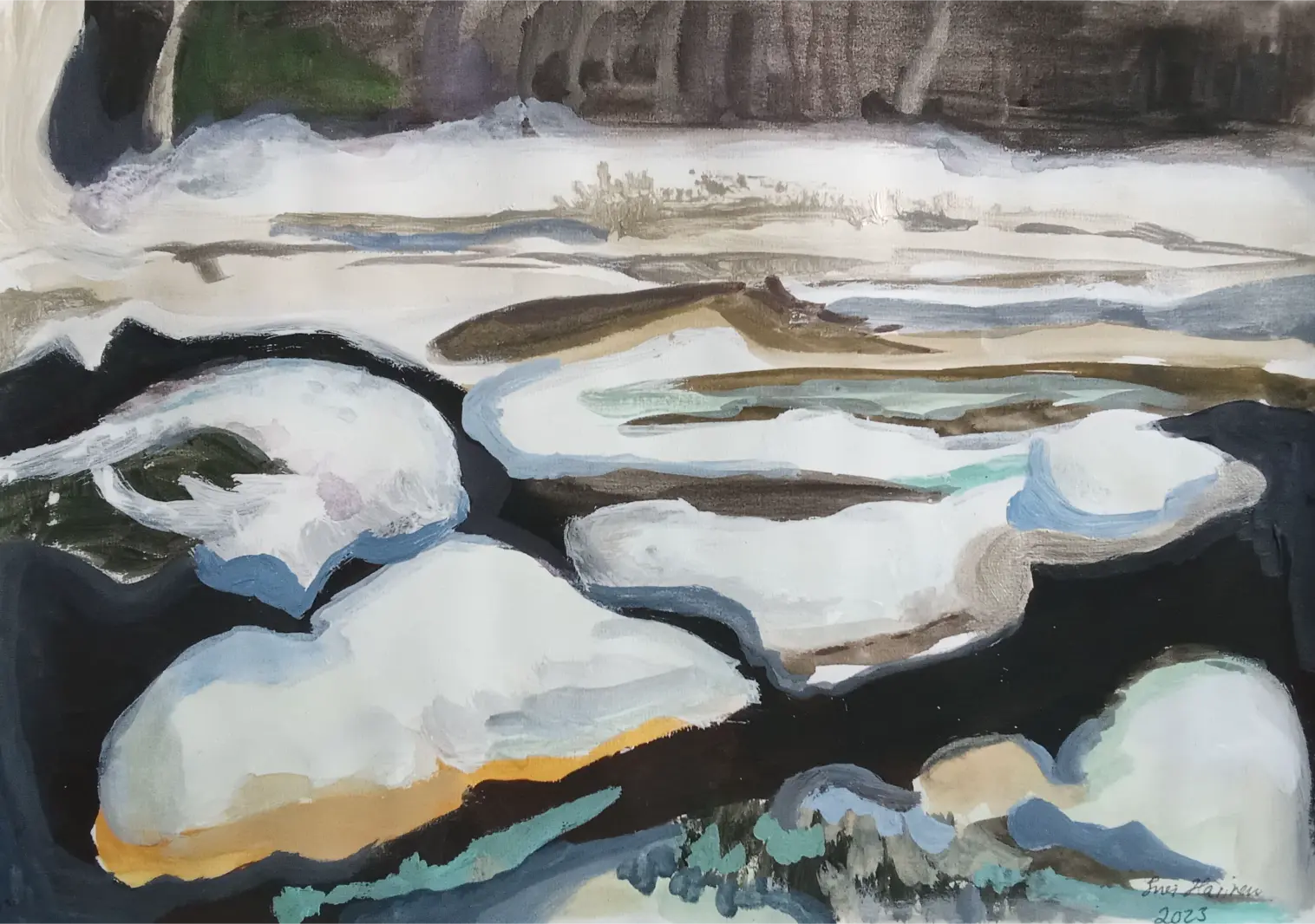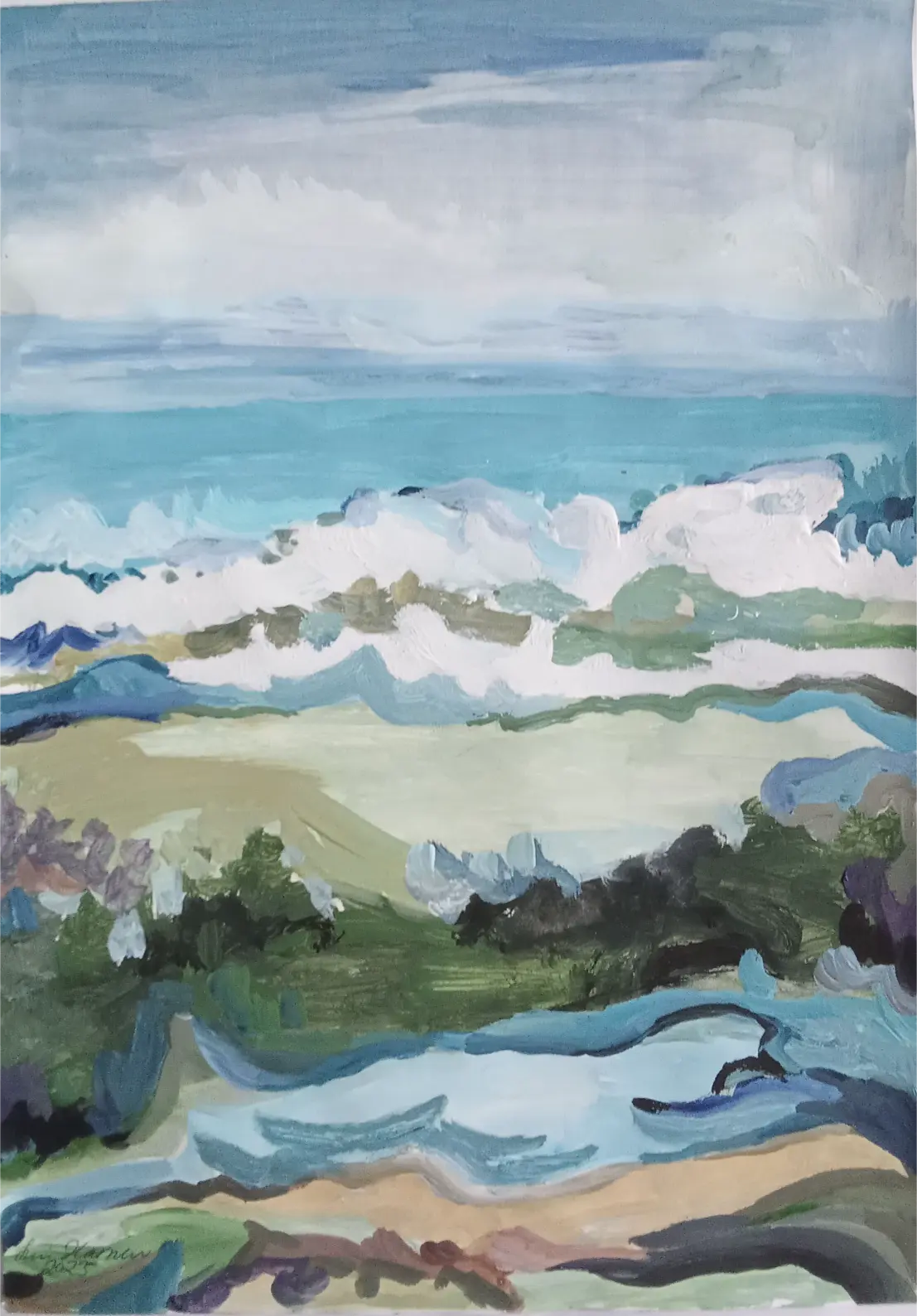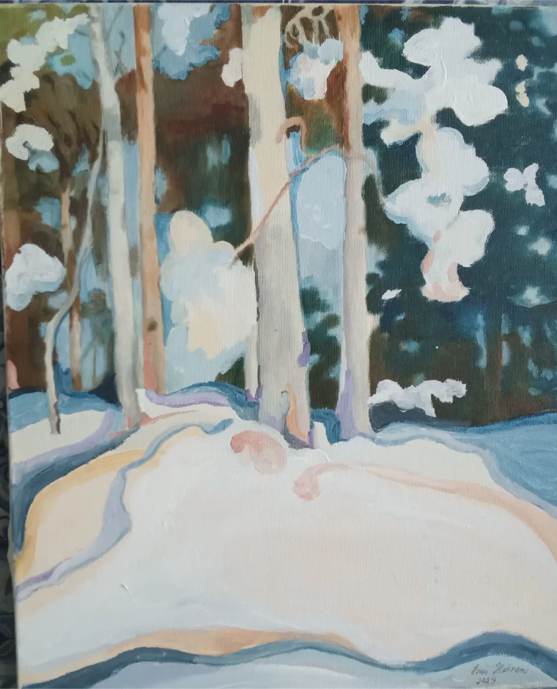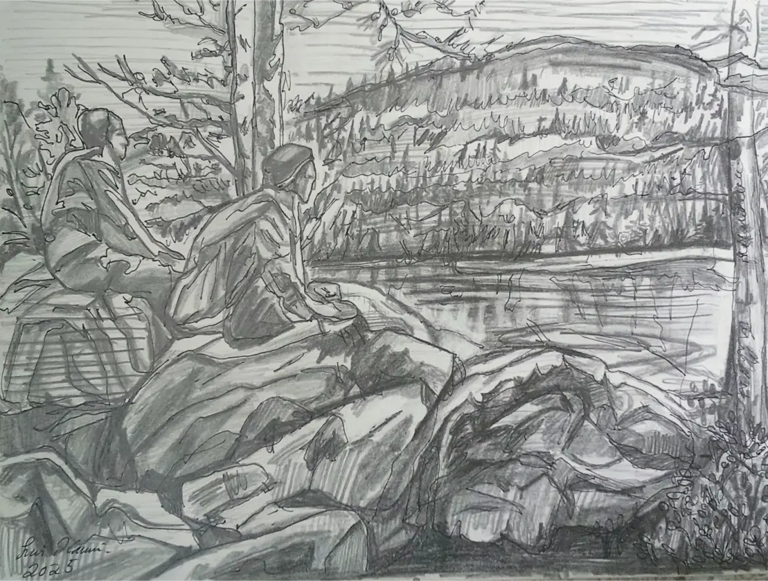 Kuvataiteilija Suovillan maalaukset ja piirrokset kumpuavat muistista ja aistimuksista. Nykyajan ja menneen ajan puhuttelevista teemoista, isovanhempien lapsuuden Laatokan Karjalasta sekä vaellusretkistä pohjoisen luontopoluilla. Einojuhani Rautavaaran ja Henryk Goreckin musiikista. Katsellessa valokuvia menneiden sukupolvien asuinpaikoista Euroopan vanhoissa kaupungeissa ja tapahtumista Laatokan Karjalassa, aika tuntuu pysähtyvän. Millaista oli elämä ennen ja nyt? Olemmeko onnellisia siellä, missä olemme ja siitä, mitä näemme ympärillä? Isovanhempieni Karjalassa vaalittiin perinteitä, elämä oli luonnonläheistä, työn täyteistä ja ortodoksiseen kulttuuriin yhteydessä. Karjalaiset tunnettiin avoimina, eläväisinä, vilkkaina, vieraanvaraisina ja heillä oli kyky säilyttää toivo vastoinkäymisten keskellä. Ehkä tämä päivän ihmiset murehtivat menneisiin sukupolviin verrattuna jopa liikaa ja elämä on kiireistä, vaikka sodat ja puute olivat läsnä myös 1900-luvun alkupuolella.