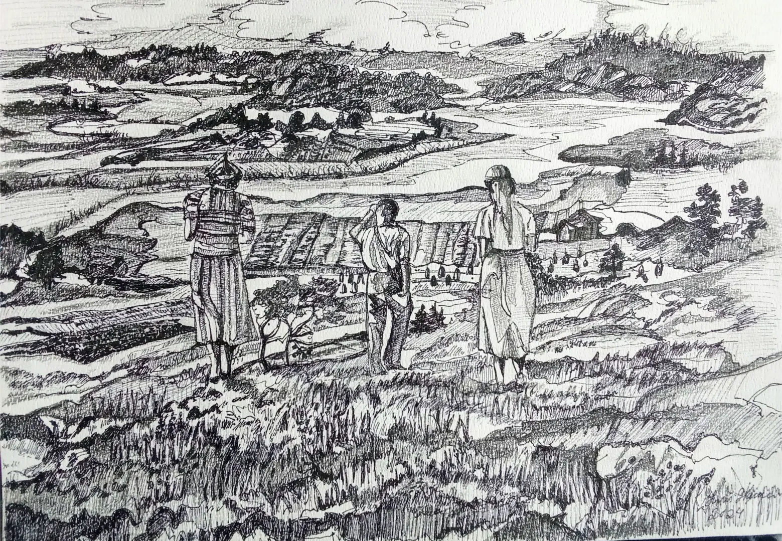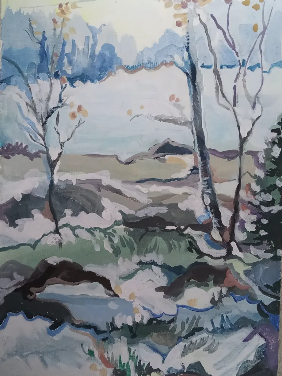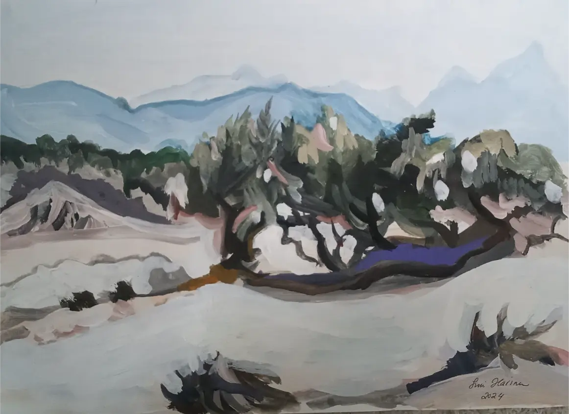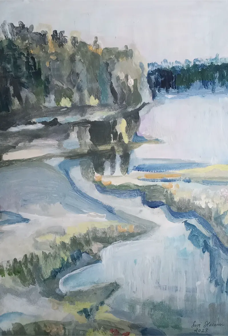 Kuvataiteilija Suovillan maalaukset ja piirrokset kumpuavat muistista ja aistimuksista. Nykyajan ja menneen ajan puhuttelevista teemoista, isovanhempien lapsuuden Laatokan Karjalasta sekä vaellusretkistä pohjoisen luontopoluilla. Einojuhani Rautavaaran ja Henryk Goreckin musiikista. Katsellessa valokuvia menneiden sukupolvien asuinpaikoista Euroopan vanhoissa kaupungeissa ja tapahtumista Laatokan Karjalassa, aika tuntuu pysähtyvän. Millaista oli elämä ennen ja nyt? Olemmeko onnellisia siellä, missä olemme ja siitä, mitä näemme ympärillä? Isovanhempieni Karjalassa vaalittiin perinteitä, elämä oli luonnonläheistä, työn täyteistä ja ortodoksiseen kulttuuriin yhteydessä. Karjalaiset tunnettiin avoimina, eläväisinä, vilkkaina, vieraanvaraisina ja heillä oli kyky säilyttää toivo vastoinkäymisten keskellä. Ehkä tämä päivän ihmiset murehtivat menneisiin sukupolviin verrattuna jopa liikaa ja elämä on kiireistä, vaikka sodat ja puute olivat läsnä myös 1900-luvun alkupuolella.